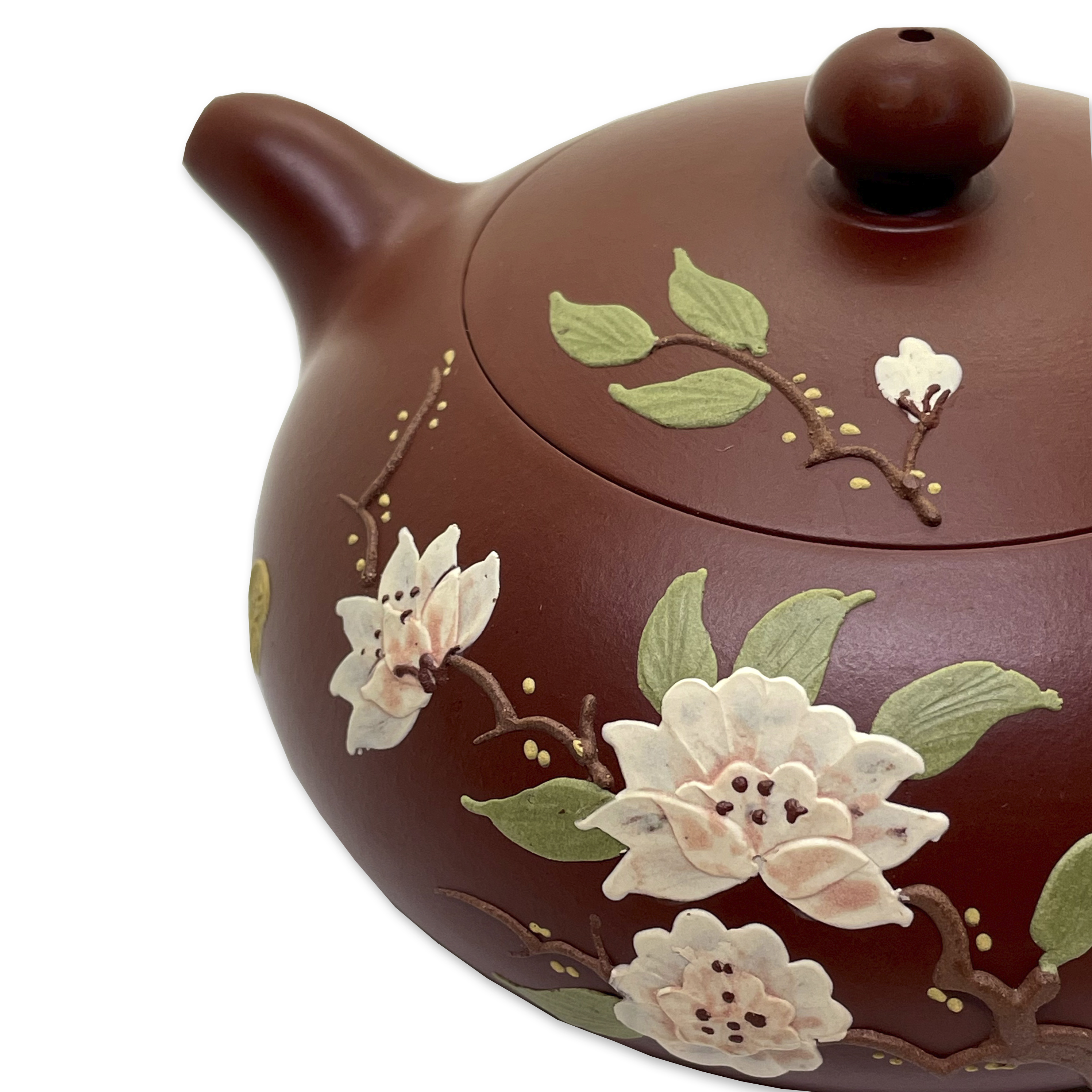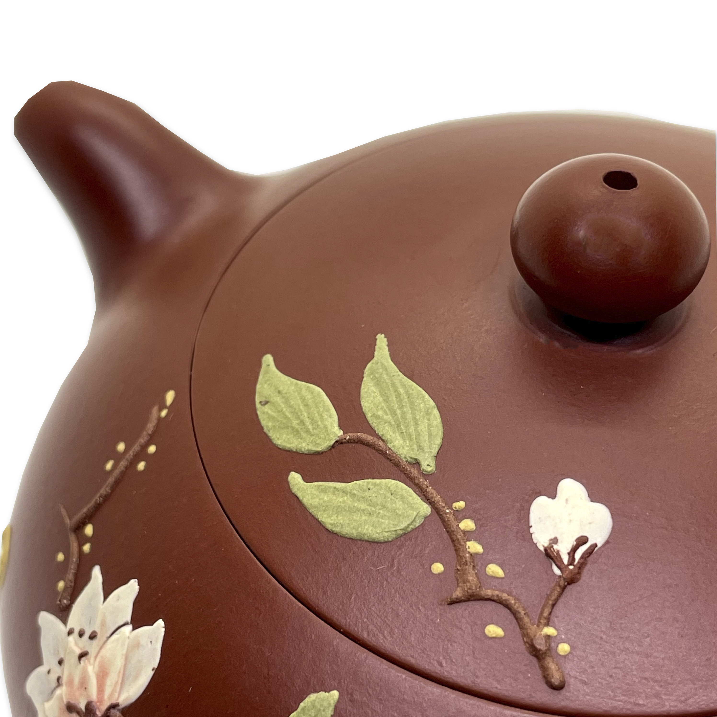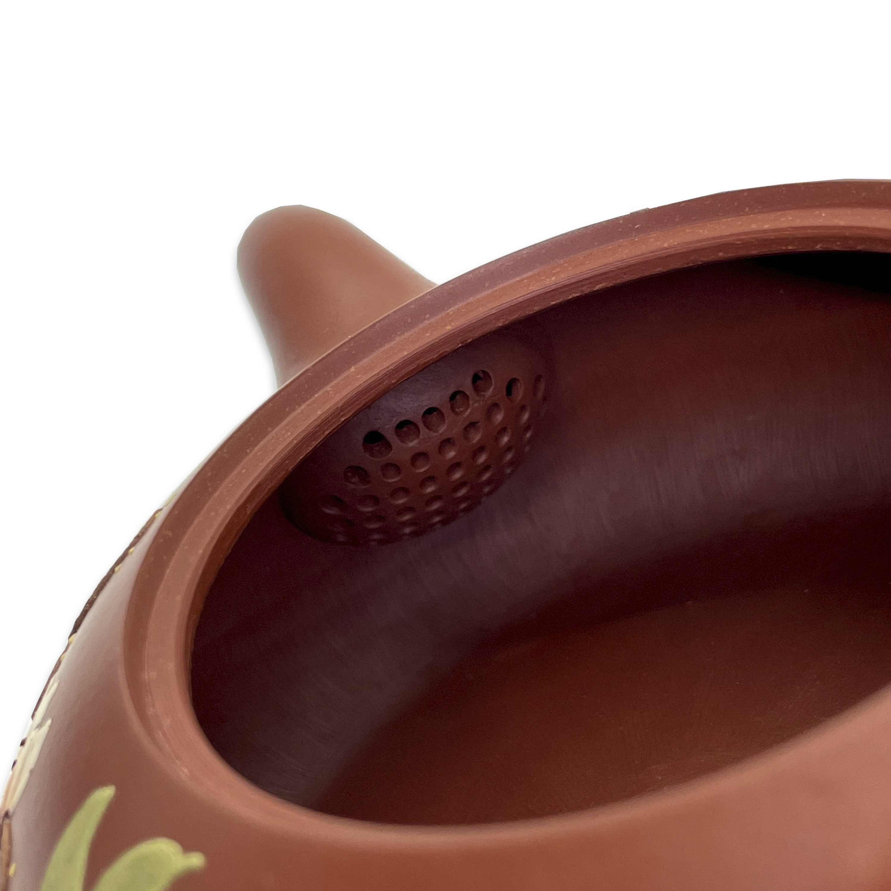 Глина 大红袍 Да Хун Пао. Цвет красный. Рельефный рисунок из глины разного цвета.
