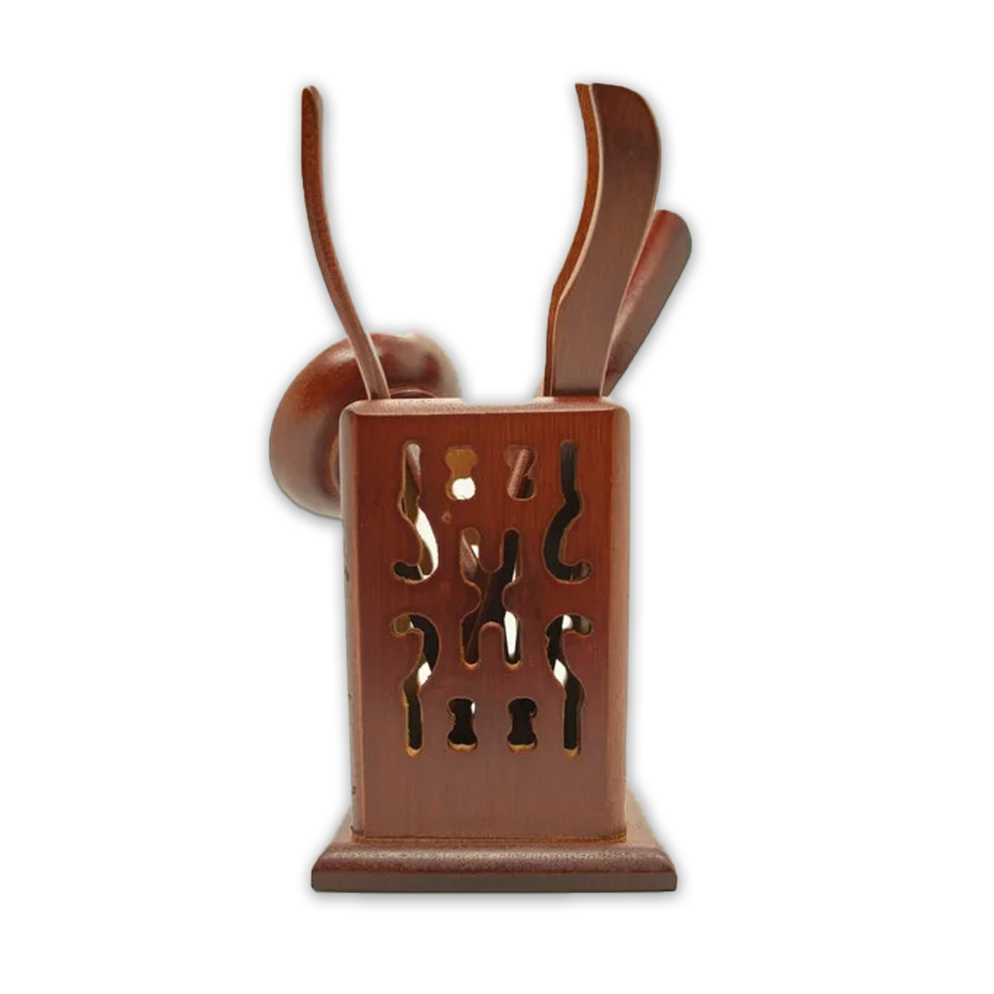 Инструменты выполнены из розового дерева. Все предметы набора покрыты лаком..