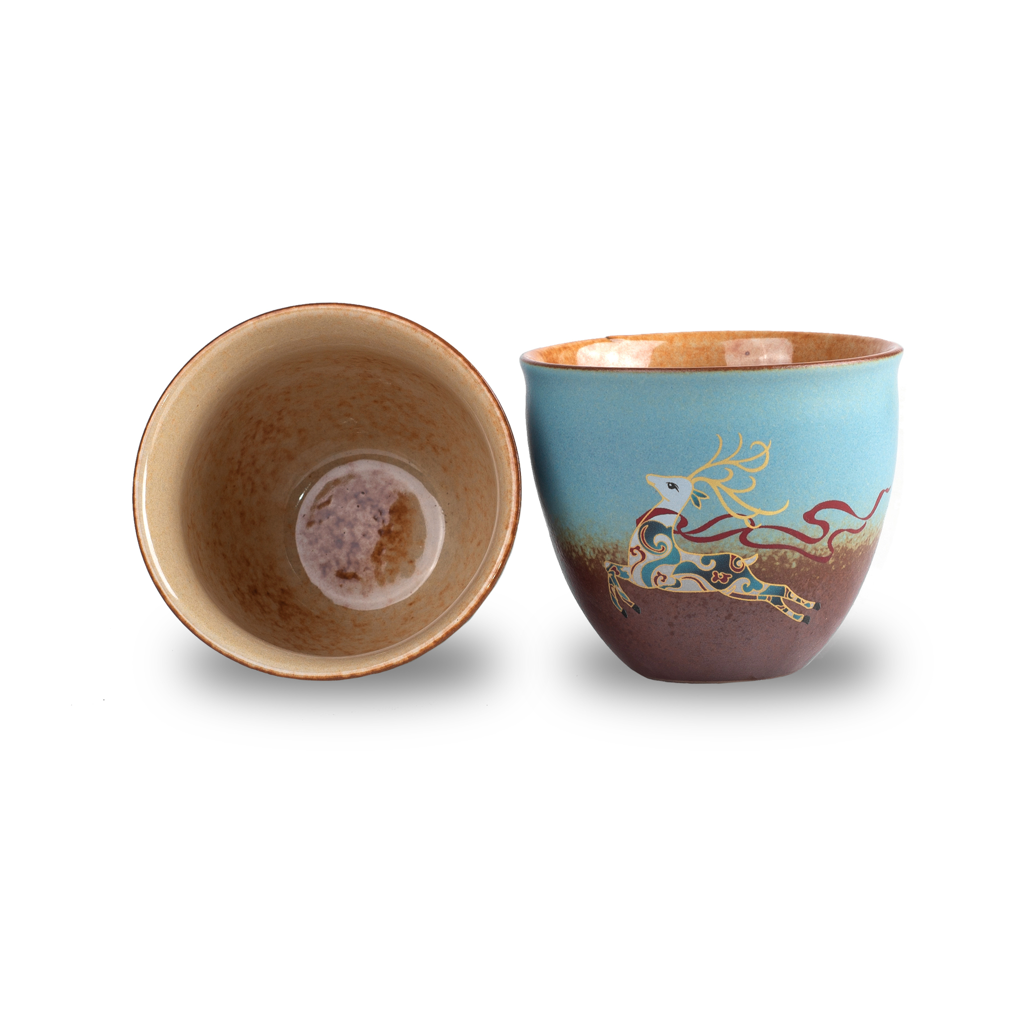 Пиала "Лесной олень", обжиг в печи, керамика 150мл.