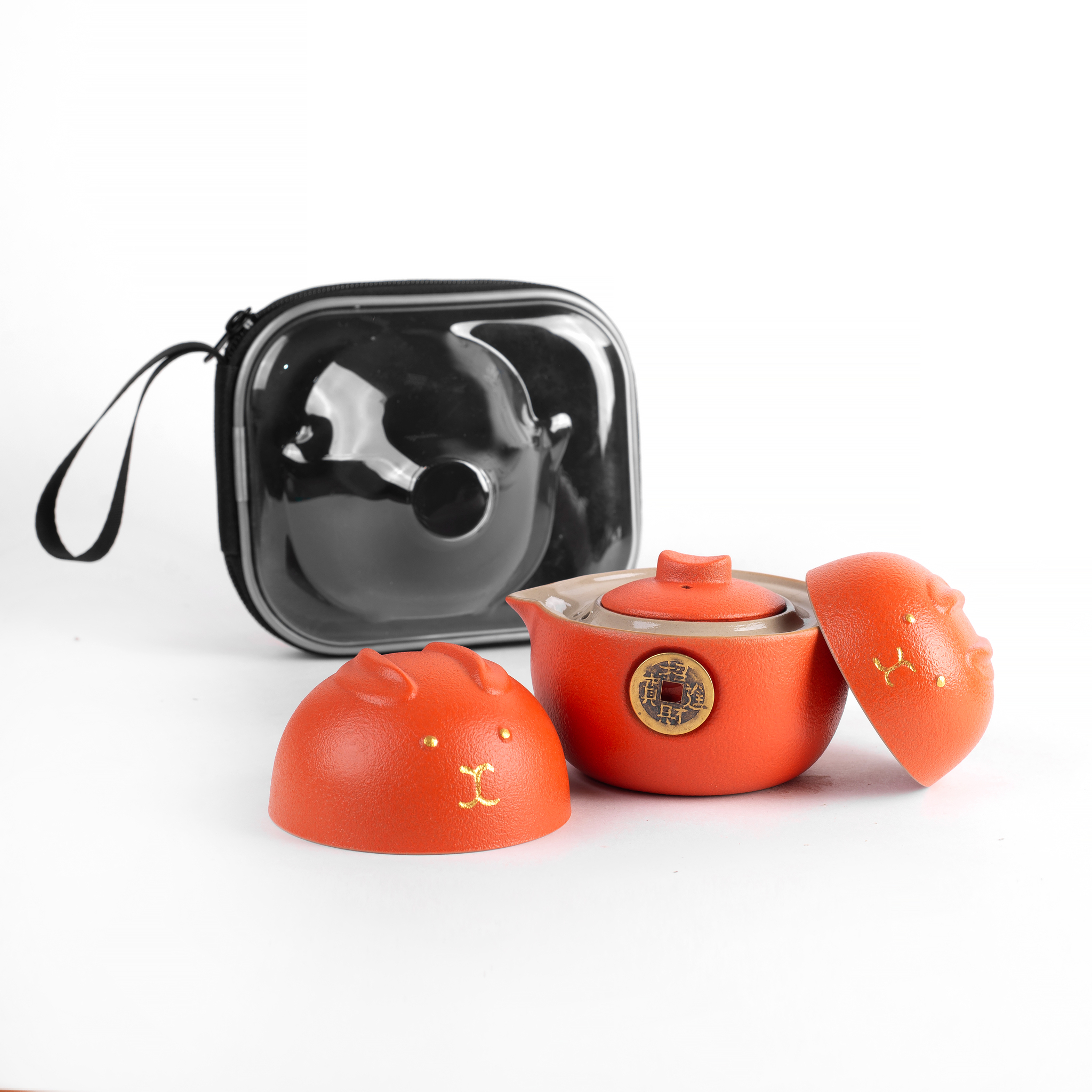 Состав набора: чайник, 2 пиалы, кейс.