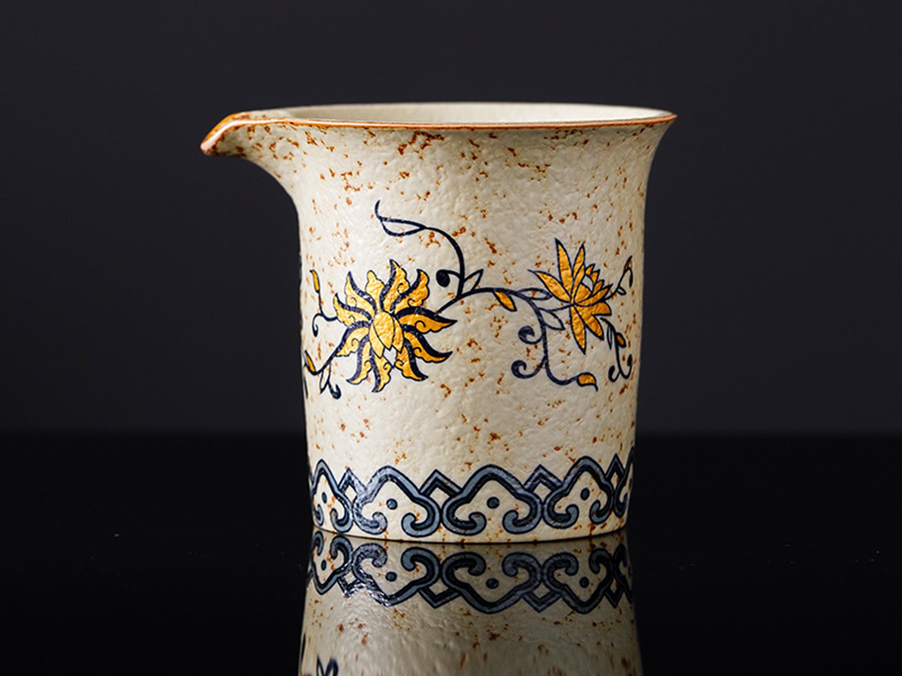Ручная работа, уникальное покрытие глазурью, тонкий и аккуратный узор, изображающий цветки лотоса - всё это напоминает античную эстетику, где практичность соединяется с искусством.